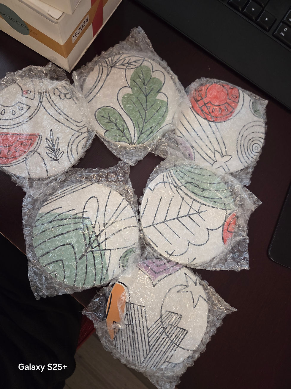 Ceramic Coasters - Set of 6 with holder - See Photos
